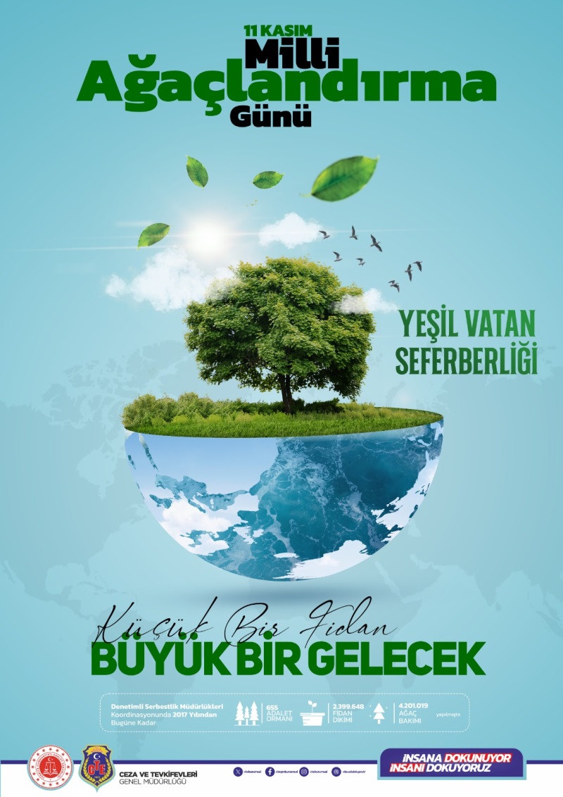11 Kasım Milli Ağaçlandırma Günü kapsamında, Denetimli Serbestlik Müdürlüğü tarafından “Geleceğe Nefes, Yeşil Vatan Seferberliği” mottosu ile fidan dikim etkinliği düzenlendi.